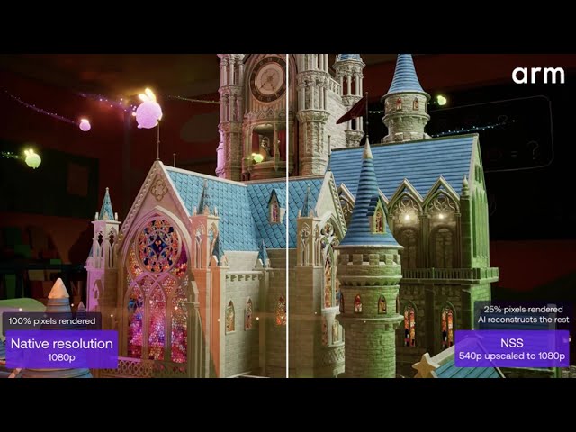 Главной новинкой стала технология Neural Super Sampling (NSS) — ИИ-апскейлер, способный увеличивать разрешение изображений в два раза за считанные миллисекунды, задержка составляет всего 4 миллисекунды на кадр. Благодаря NSS, пользователи смогут наблюдать улучшенное качество графики — например, масштабирование с 540p до 1080p без потери деталей, сохранением яркой цветовой гаммы, освещения и четкости динамических сцен. Разработчики игр смогут использовать высвободившиеся ресурсы для повышения частоты кадров, улучшения визуальных эффектов или снижения энергопотребления, что особенно важно для мобильных устройств.